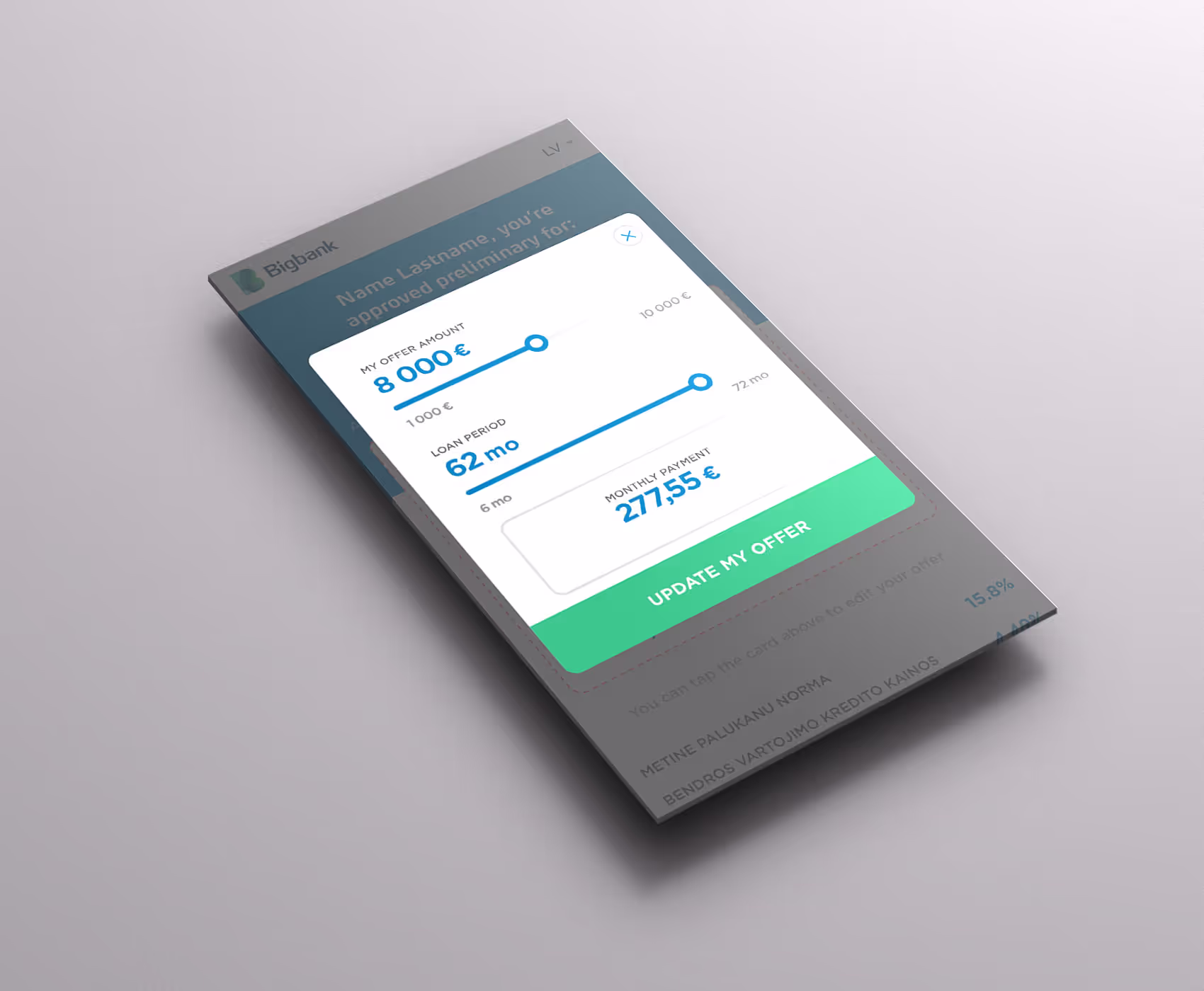 Bigbank faced challenges in simplifying its complex loan application process. The outdated system had a vary basic design, lacking focus on the users and unification across the board. This resulted in long approval times and high dropoff rates, creating frustration for applicants and inefficiencies for the bank’s staff.